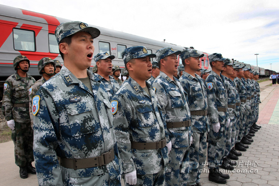 官兵意氣風(fēng)發(fā)、斗志昂揚(yáng)準(zhǔn)備登上俄方專(zhuān)列。 曹占禮 攝