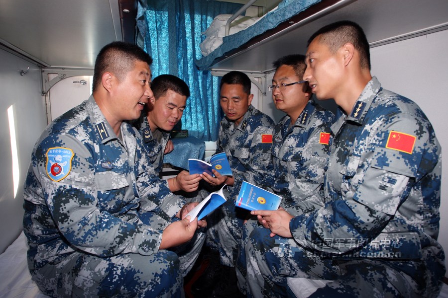 參加中俄聯演的空軍戰斗群地轉官兵,在中轉途中充分利用空閑時間學習俄語,提高與俄軍官兵進行日常交流的能力。 曹占禮 攝