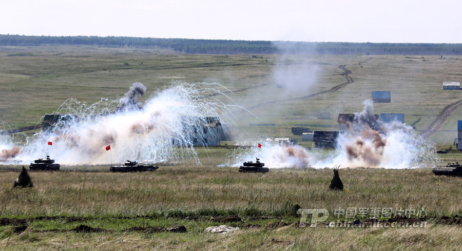 我坦克戰車對恐怖武裝力量實施火力打擊。李祥輝攝