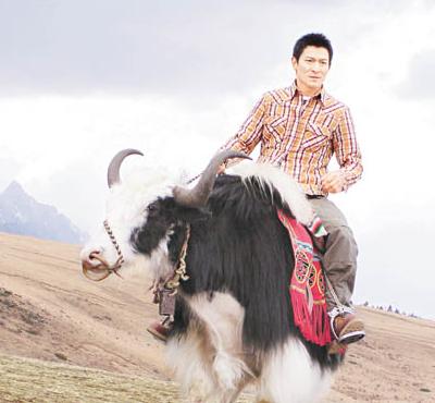 中新網(wǎng)5月13日電 香港藝人劉德華早前到云南麗江玉龍雪山拍攝最新一輯綠茶廣告,在上輯廣告中,導(dǎo)演找來老虎BB跟華仔合作,而這居然是雪山牦牛跟華仔做拍檔,在一片草原上華仔優(yōu)哉游哉扮牧牛郎,構(gòu)成一幅優(yōu)美的風(fēng)景畫。