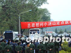 十四日,解放軍總政歌舞團到北京小湯山“非典”定點醫院慰問醫護人員,受到熱烈歡迎。作者:安然