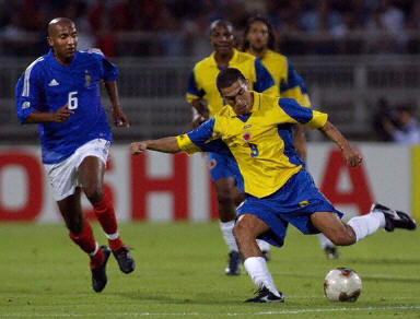 哥倫比亞隊(duì)目前正處于進(jìn)球荒,在這場(chǎng)比賽之前,該隊(duì)已經(jīng)有5場(chǎng)比賽沒(méi)有入球。不過(guò)本場(chǎng)比賽面對(duì)衛(wèi)冕冠軍法國(guó)隊(duì),他們卻絲毫沒(méi)有表現(xiàn)出弱隊(duì)的樣子。法國(guó)隊(duì)缺少了中場(chǎng)大將齊達(dá)內(nèi)和維埃拉,球隊(duì)進(jìn)攻組織有些凌亂。上半場(chǎng),場(chǎng)上局面僵持,法國(guó)隊(duì)也只有一兩次像樣的進(jìn)攻。