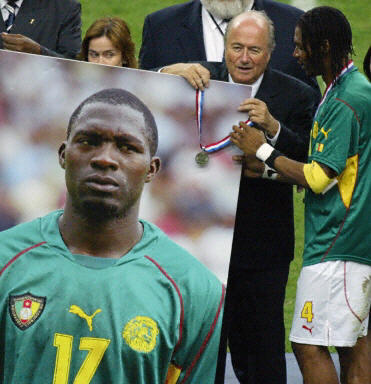 在26日的半決賽中,喀麥隆隊(duì)中場(chǎng)球員馬克-維維安·福曾因?yàn)樾呐K病突發(fā)而在與哥倫比亞隊(duì)的比賽中猝死。開(kāi)賽前,雙方隊(duì)員臂帶黑紗為這名不幸的喀麥隆選手默哀一分鐘。