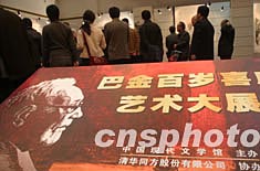 十一月十五日,作為向中國文學巨匠巴金先生百年華誕獻禮的《巴金百年喜慶藝術大展》在北京中國現代文學館隆重開幕。大展集中了五十位藝術大師精心創作的描繪巴金先生和他的作品及思想的作品,是近年來少有的藝術大聯展。中新社記者:史利