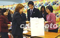 選舉管理委員會的工作人員22日在投票站內(nèi)做最后準(zhǔn)備,確保選舉投票順利進行。中新社記者:洪少葵