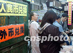 里昂證券預(yù)測,明年內(nèi)地訪港旅客最少達(dá)一千二百萬人次,總消費(fèi)額將達(dá)五百九十億港元,較今年高出至少二百億港元,相信有利創(chuàng)造香港本地的就業(yè)機(jī)會(huì)。圖為時(shí)下香港鬧市區(qū)人民幣兌換業(yè)務(wù)繁忙,已顯內(nèi)地游客訪港臨近高峰。作者:潘索菲