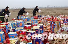 一月十四日,北京警方再次將依法收繳的2203萬余件、銷售價值達144萬元人民幣的非法、偽劣、超標的煙花爆竹進行集中銷毀,以表示警方打擊非法私運、販運、銷售煙花爆竹的決心不變。作者:李連杰