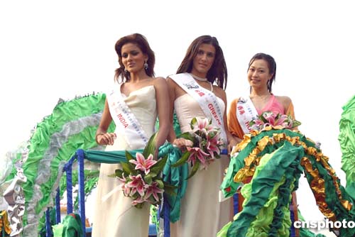 二十三日上午,在風光旖旎的湘江岸邊,來自三十一個國家和地區世界年度旅游皇后舉行國際花車巡游活動。這是將參加二十九日舉行的第十一屆世界旅游小姐年度皇后大賽世界總決賽的三十一位佳麗,第一次在長沙全體亮相。作者:劉雙雙