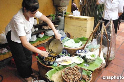 越南人心靈手巧,“好食館”廚師的刀功博得滿堂喝彩,切得纖細(xì)的果蔬,紅紅綠綠滿碟涼拌,煞是好看。各種膚色游客常常在品嘗美食之前,先拍照一番才舍得動(dòng)筷。