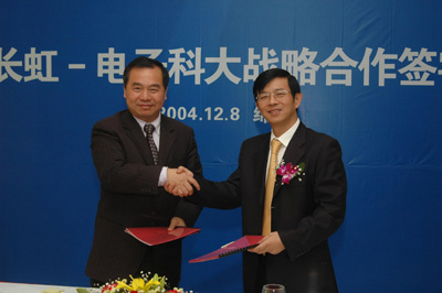 中新四川網(wǎng)12月8日電(陳紅)四川長虹電器股份有限公司董事長趙勇和成都電子科技大學(xué)校長鄒壽彬,今天分別代表雙方,為醞釀已久的長虹成都電子科大校企聯(lián)姻發(fā)展戰(zhàn)略簽約定音。