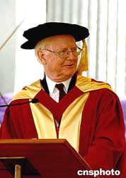 一九九六年諾貝爾經(jīng)濟(jì)學(xué)獎(jiǎng)獲得者的J James A Mirrlees爵士,12月9日獲香港中文大學(xué)社會(huì)科學(xué)博士。作者:宋吉河