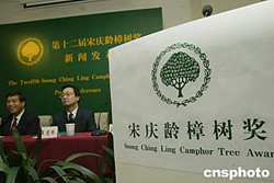 十二月十一日,中國福利會在北京公布第十二屆宋慶齡樟樹獎評選結(jié)果。宋慶齡樟樹獎是表彰為中國婦幼事業(yè)做出突出貢獻的國內(nèi)外人士設(shè)置的獎項。本屆五名獲獎?wù)叻謩e是全國婦聯(lián)名譽主席彭佩云、著名社會活動家陳香梅、聯(lián)合國兒童基金會駐華辦事處首席代表伍德琛、國際“微笑列車”總裁白堅龍和公安部刑偵局調(diào)研員祝燕濤。中新社記者:史利
