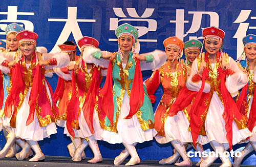 圖:暨南大學學生表演蒙古族舞蹈《歡樂的草原》