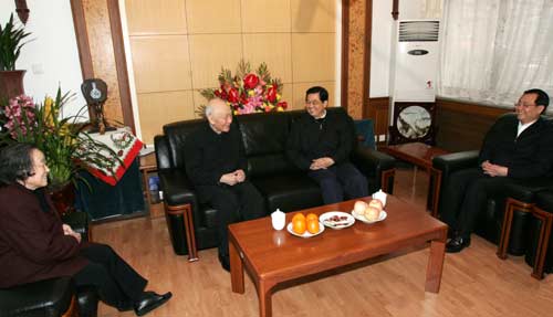 前天下午,中共中央總書記、國家主席、中央軍委主席胡錦濤,分別看望了朱光亞和楊樂兩位著名科學家,聽取他們對中國科技事業(yè)發(fā)展的意見和建議,向他們和全國科技工作者表示親切問候和新年祝福。