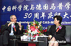 中國科學院與德國馬普學會科學合作三十周年慶祝大會五月二十四日在北京舉行,國務委員陳至立出席會議并會見了馬普學會主席格盧斯教授。作者:徐曦弋