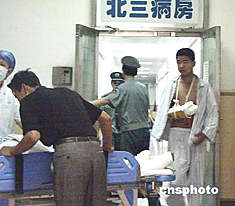 六月十日上午,北京市積水潭醫院正在全力搶救六月九日京民大廈火災中的受傷人員。這場火災當時共造成9人死亡,39人受傷。作者:韓藝冰