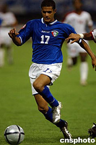 7月19日晚,2004年亞洲杯B組科威特隊與阿聯酋隊的比賽在濟南山東省體育中心開戰。科威特隊(藍)發揮出色,最終以3比1大勝阿聯酋隊。中新社記者:武仲林