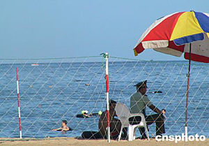 七月下旬,中國各地迎來了一年中最炎熱的日子。在中國北方著名的避暑勝地北戴河,一名武警戰(zhàn)士正在海濱浴場執(zhí)勤。北戴河曾經(jīng)是中國高層領(lǐng)導(dǎo)夏季辦公和休假的地方,這里一度被輿論譽(yù)為“夏都”,不過自去年開始,中央領(lǐng)導(dǎo)人和中央機(jī)關(guān)干部夏季不再到這里辦公。作者:齊彬