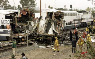 警方和救援人員稱,初步調查表明這起重大交通事故是由一名打算自殺的年輕人將汽車停在鐵路軌道上造成的。事發時,一列往南行進的輕軌列車在洛杉磯地區的格倫代爾鎮撞上這名年輕人停放在軌道上的吉普車后出軌,又與另一列往北行進的輕軌列車相撞,車廂翻倒。