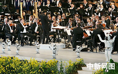 3月24日,2005日本愛知世界博覽會的開幕上,索尼和本田公司的機器人與現場樂隊同臺表演。