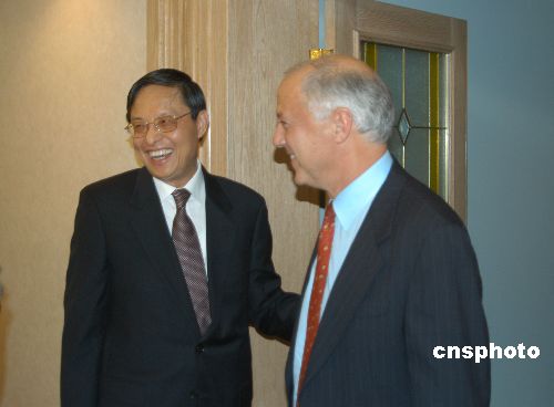 圖:周文重與新任美中關系全國委員會主席交談