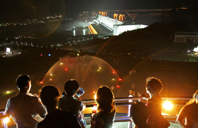 從明天起,斬斷長江的三峽大壩,每天將允許1000名普通游客把這個龐然大物“踩”在腳下!7月1日,三峽大壩壩頂將首次對游客開放,但今年的開放時間因施工需要到9月30日截止,到明年汛期再行開放。本報記者于昨日趕到壩區并星夜上壩,打探到壩頂旅游臺前幕后諸多細節。