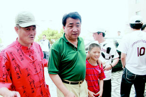 中新網(wǎng)7月4日電 據(jù)沈陽晚報(bào)報(bào)道,前晚,趙本山掛帥遼足的首場(chǎng)戰(zhàn)役在鞍山吹響號(hào)角,造聲勢(shì)也好,壯士氣也罷,趙董事長(zhǎng)一揮手,就召來了演藝圈一票好友前來捧場(chǎng)。那英、凌峰、滿文軍、姜昆、范偉、臧天朔、梁天……這些人組成的助威團(tuán)成為昨晚賽場(chǎng)內(nèi)外一道亮眼的風(fēng)景線。記者在賽前堵住了姜昆、凌峰和滿文軍3位“趙董好友”,他們?cè)诖笤捵闱虻耐瑫r(shí),也對(duì)趙本山涉獵足球圈發(fā)表了一番肺腑之言。