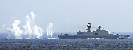 據(jù)報(bào)道,昨天的海空聯(lián)合操演假想解放軍以突擊、封鎖及海空攻擊方式,意圖封鎖臺(tái)左營(yíng)與高雄港,阻斷臺(tái)對(duì)外交通。臺(tái)海軍艦只緊急出港,港內(nèi)部隊(duì)實(shí)施要地防空。此時(shí),模擬解放軍戰(zhàn)機(jī)臨空,臺(tái)軍各艦及港內(nèi)防空飛彈、火炮,皆啟動(dòng)接戰(zhàn)。