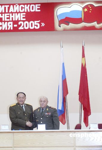 八月十八日,中國人民解放軍總參謀長梁光烈上將(左)和俄羅斯聯(lián)邦武裝力量總參謀長巴魯耶夫斯基大將,在位于符拉迪沃斯托克的俄羅斯太平洋艦隊(duì)共同宣布,“和平使命—2005”中俄聯(lián)合軍事演習(xí)正式開始。此次聯(lián)合軍事演習(xí),圍繞共同打擊國際恐怖主義、極端主義和分裂主義,應(yīng)對各種危機(jī),主要演練戰(zhàn)略磋商與戰(zhàn)役籌劃、兵力投送與展開、實(shí)施交戰(zhàn)三個訓(xùn)練問題。演習(xí)跨越兩國陸、海、空域,參演軍兵種齊全,演練科目較多。作者:王麗南