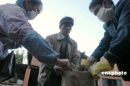 | 十一月二十三日下午,防疫人員用拖拉機(jī)把云南省楚雄市富民鎮(zhèn)荷花村被撲殺的家禽運(yùn)走,進(jìn)行集中處理,杜絕傳染隱患。中國(guó)農(nóng)業(yè)部二十二日稱,云南省楚雄市富民鎮(zhèn)荷花村發(fā)生高致病性禽流感。當(dāng)?shù)卣M織人員對(duì)疫區(qū)點(diǎn)三公里范圍內(nèi)撲殺家禽。作者:甘娜