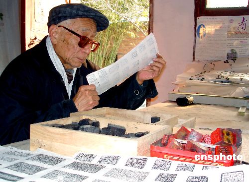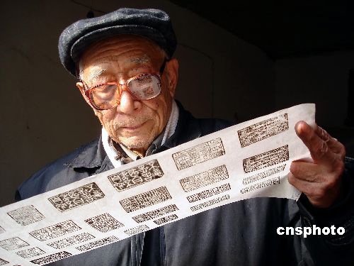 | 12月27日,鹿邑縣八十三歲老人潘又泉在審驗(yàn)《道德經(jīng)》刻印稿。潘又泉是中國(guó)鹿邑老子學(xué)會(huì)副會(huì)長(zhǎng),他數(shù)度春秋,用兩千多方次石料,刻下老子《道德經(jīng)》五千言全文,金石作品和白話(huà)注解的《道德經(jīng)刻譯》近日即將出版。 作者:閆廣君