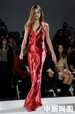 2006年2月3日,為期八天的二00六紐約時裝周在曼哈頓開幕,這個世界時尚界盛事將傳遞本年度秋季時裝的潮流。圖為模特在展示日本設計師Akiko Ogawa的作品。這是Akiko Ogawa的作品第一次在紐約展示,她的靈感來自巴黎上個世紀20年代上流社會的照片。