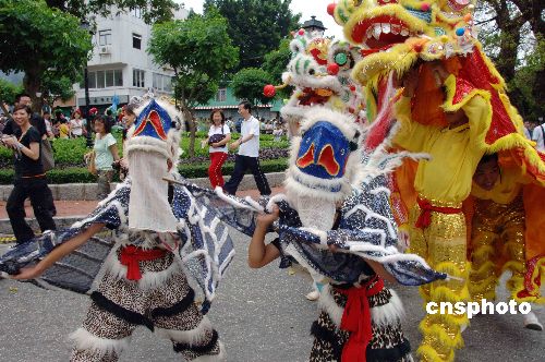 駐澳部隊女兵深受澳門市民喜愛。作者:梁永強 澳門路環會景大巡游別具特色。作者:梁永強