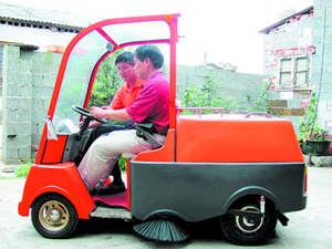 3年來,他們相繼從家中拿出了準備買新房的近30萬元積蓄用于研究。2008年底,經(jīng)過多次改裝和調(diào)試,一輛“摩托掃地車”應運而生。2009年暑假,第一代小型電動清掃車終于問世。