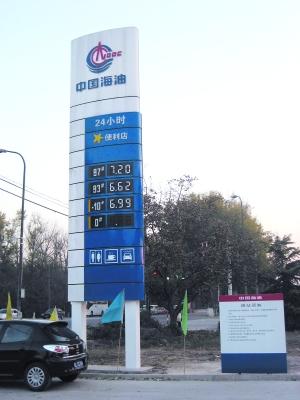 中海油大大方方豎起低價牌。晨報記者 周治宏/攝