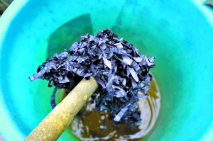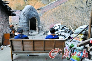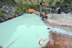 在靠山腳下的一排爐子前面,一個年輕小伙正在焚燒用黑塑料袋裝著的東西?吹接浾呱锨,一位操有粵西口音、年齡在40歲上下的老板模樣的人湊上前來!澳氵@是煉金嗎?”“不是煉金,搞點電鍍廠的廢水!庇浾呖吹接幸粋盛有金黃色液體的玻璃器皿放在一個鐵盆上。在雨棚一側,還堆有幾十個藍、黑色的塑料桶,桶口均用塑料袋堵住后,再用蓋子蓋上的。