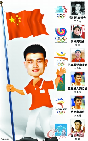 從中國代表團參加奧運會的歷史來看,旗手人選還是有一定的規律的。以夏季奧運會為例,在已經參加的5屆奧運會上,中國代表團的旗手無一例外全部來自中國男籃,比如1984年洛杉磯奧運會的王立彬,1988年漢城奧運會的宋濤,1992年巴塞羅那奧運會的宋力剛,1996年亞特蘭大和2000年悉尼奧運會的劉玉棟以及2004年雅典奧運會的姚明。無一例外,旗手都是身高2米以上的“巨人”。
