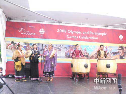 作為下一屆冬奧會主辦城市的溫哥華9日舉行大型活動慶祝北京奧運會隆重開幕,中加兩國藝人同臺獻藝。呂振亞攝