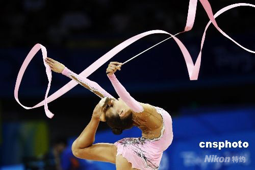 8月23日晚,在北京工業大學體育館舉行的北京奧運會藝術體操個人全能決賽中,俄羅斯選手葉夫根尼婭·卡納耶娃以出色的表現獲得冠軍。