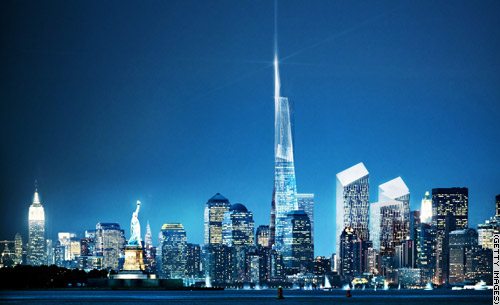 2003年11月19日:在政府截止期限前,利伯斯金和查爾斯給出了“自由之塔”的設(shè)計方案。在該方案中,辦公大樓仍然高達(dá)1776英尺,并且頂上有一個小尖頂塔。但是,本方案改變此前有棱角的設(shè)計,采用了一種扭轉(zhuǎn)的造型:大廈的東西兩側(cè)隨著高度而扭曲。大廈的外部采用鋼筋網(wǎng)結(jié)構(gòu),頂部用風(fēng)力渦輪發(fā)電機(jī)為大廈提供部分能源。在本方案中,有60層樓作為辦公用途,建筑的其它部分包括一個室內(nèi)觀景臺、餐廳以及頂樓的運(yùn)動場館。這個方案被稱為“充滿靈感”。