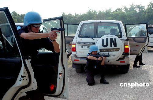 | 7月12日海地太子港,中國防暴隊員配合聯海團行動,作好戰斗準備。當天武裝團伙在海地國際機場附近杜桑.盧維杜爾大街及與中國防暴隊駐地一墻之隔的國家一號公路,針對聯海團人員發動攻擊。這次攻擊有幾個反政府非法武裝團伙共同進行,在中國防暴隊營地不時聽到激烈槍聲。目前為止,沒有人員傷亡。中國防暴隊處于備戰狀態。自世界杯結束后,海地武裝分子發動對當地警察的襲擊,制造多起嚴重案件,綁架事件持續增多,頻繁出現在太子港“相對安全”區域。目前為止,已造成多人死亡,數十人受傷,其中一名39歲海地警察身中15槍。約旦防暴隊遭到了武裝襲擊,海地警察和巴西維和部隊在軍事城的檢查站多次與非法武裝分子發生持續槍戰。聯海團針對非法武裝圍剿行動發射子彈3000多發,抓獲近50名武裝分子,繳獲一批槍支彈藥。中新社發 陳 進 攝