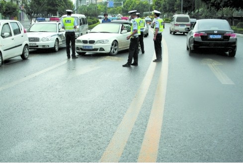 昨日上午9時許,綿陽交警直屬三大隊民警范強正在治平路附近執勤,而從芙蓉漢城到東津路都在進行交通管制,所有車輛按照規定正在等待放行。突然,一輛車牌號為川BAG789的白色寶馬跑車駛進了交通管制區,并一路飛奔。范強見狀,立即打手勢示意司機停車檢查。見此情形,司機不但沒有停車,反而加速向芙蓉橋駛去。