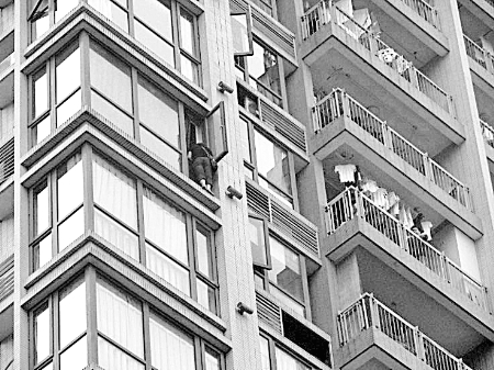 記者昨日來到小區物管辦公室,一位工作人員告訴記者,欲跳樓者為女性,大概30多歲,據說她是為了向位于小區第七幢的裝修公司討要工錢而翻出窗戶,并聲稱要跳樓,并不停地和樓內的人發生爭吵。整個過程從15日下午5點左右一直持續到7點過,女子后來被警察和消防官兵救下來。