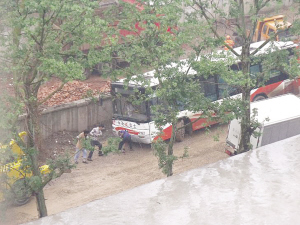 最顛的路是在土崗段和銀貢山莊段。“坐上去簡直就像坐著碰碰車。”當地的居民告訴記者,那兩條路“解放前就有了”,早就被軋得坑坑洼洼。駕駛員每次行駛到水坑前,都不敢過去,“我們經常沒事就跑到附近工地撿石頭往里填”。駕駛員們邊開車,邊修路,可還是免不了遭殃——去年一位30多歲的女乘客坐在最后一排,一個大坑過去,這名乘客就被顛折了腰。