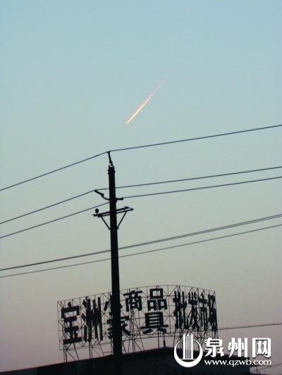 最近的一次是在去年的1月5日傍晚時分,泉州的西北方向上空突然出現一個拖著紅色火焰,時長時短的不明飛行物。