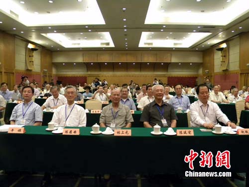 中新網(wǎng)南京8月24日電 (記者 唐娟)由黃埔軍校同學(xué)會(huì)、江蘇省黃埔軍校同學(xué)會(huì)、中國(guó)廣播電視協(xié)會(huì)聯(lián)合主辦的紀(jì)念抗日戰(zhàn)爭(zhēng)勝利65周年黃埔論壇,于2010年8月24日上午在南京舉行。來(lái)自海峽兩岸及海外的黃埔同學(xué)及親友,有關(guān)專(zhuān)家學(xué)者,相關(guān)單位領(lǐng)導(dǎo)等150余人參加了論壇。