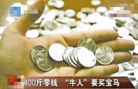 23日一大早,一位姓王的讀者給本報新聞熱線打來電話稱,濟寧近日出現一批“網絡紅人”,他們用車拉著重約400斤、價值15萬元的零錢去買寶馬車,錢幣面值最大的一元,另外還有許多鋼镚兒,總共15萬元。