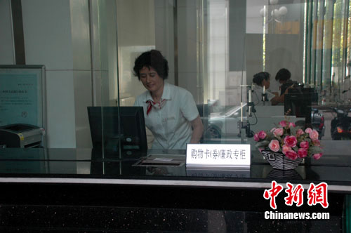 中新網徐州9月11日電 (記者 朱志庚) 9月10日,江蘇省徐州市舉行購物卡(券)廉政專柜啟動儀式,徐州所轄六縣市也同步啟動。徐州市區廉政專柜設在工商銀行徐州分行大同街營業部。據該營業部王經理介紹,今天上午,已有一位女士到這里交了一張大面額的金地百貨購物卡。