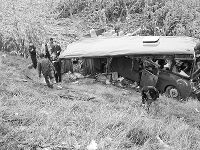傷勢(shì)較輕的乘客楊先生回憶說(shuō),早上9點(diǎn)多,該中巴車(chē)滿(mǎn)載乘客從海石灣出發(fā),大約十多分鐘后,車(chē)行駛到旋子村段。這時(shí),前面突然來(lái)了一輛車(chē),在會(huì)車(chē)過(guò)程中,中巴車(chē)司機(jī)朝右打了方向盤(pán)。由于下雨路滑,客車(chē)竟沖過(guò)護(hù)欄沿斜坡向玉米地沖了下去,車(chē)上乘客嚇得大叫,后來(lái)他就什么也不知道了。當(dāng)他反應(yīng)過(guò)來(lái)時(shí),只見(jiàn)車(chē)頂不見(jiàn)了,車(chē)身倒在玉米地內(nèi),現(xiàn)場(chǎng)亂作一團(tuán)。有的乘客從車(chē)窗里爬了出來(lái),傷勢(shì)較輕的乘客還主動(dòng)營(yíng)救重傷員,大家用手機(jī)撥打120和110求援。