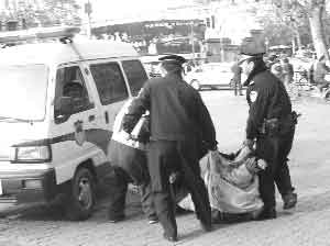 記者趕到這家超市時,這名30多歲的小偷正四肢大開躺在地上,眼睛緊閉。一群在超市購物的顧客和幾名保安圍在他身邊,一名保安大聲對小偷喊:“喂!喂!”但小偷一聲不吭。幾位顧客說,“裝什么裝,大家都知道你在裝死呢。”
